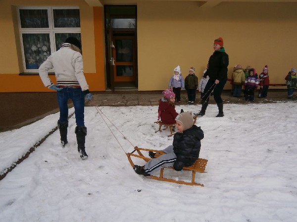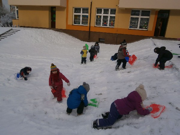 Zimowe zabawy gr. I i II na śniegu:) Drogi rodzicu pamiętaj o nieprzemakalnym ubraniu dla dziecka!