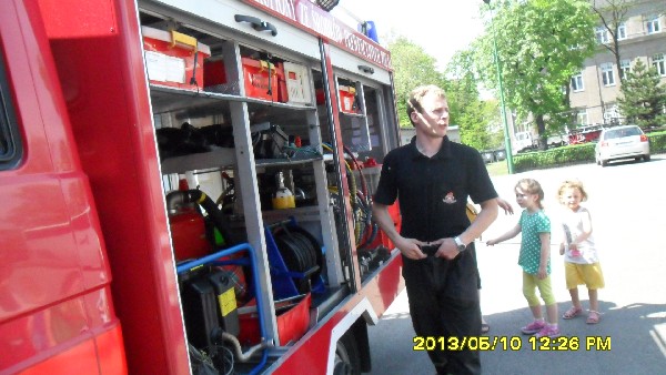 Happening Bibliotek oraz Straż Pożarna- zielone żabki i żabki